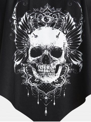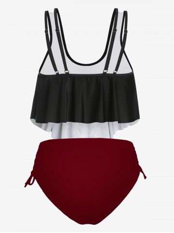 Plus Size & Curve Gothic Skull Print Ruffled Overlay Tankini Swimwear