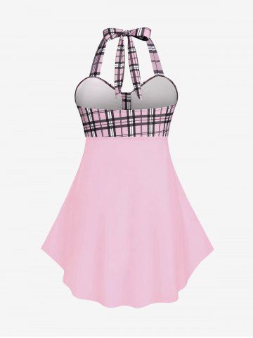 Plus Size & Curve Halter Plaid Skull Print Backless Gothic Modest Tankini Swimsuit - Pink - 4x