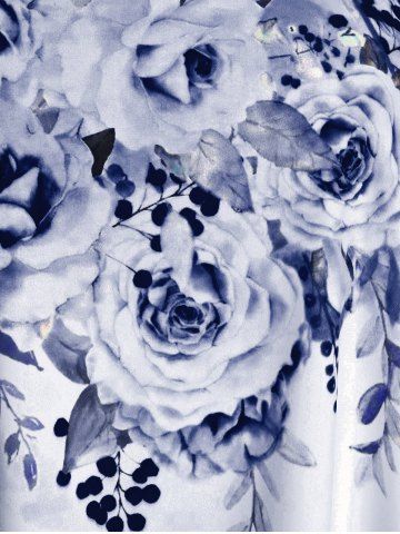 Plus Size & Curve Ombre Color Floral Print Crisscross Modest Tankini Swimsuit - Deep Blue - 5x