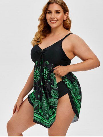 Plus Size & Curve Paisley Handkerchief Padded Modest Tankini Swimsuit - Green - 1x