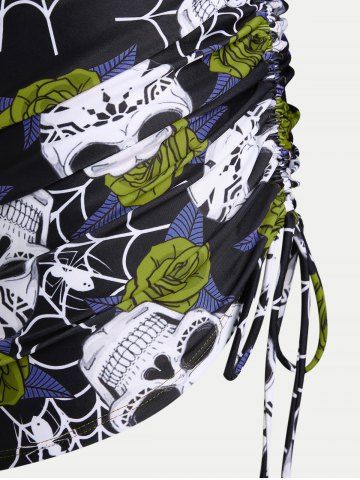 Plus Size Tankinis > Plus Size & Curve Skull Rose Print Crossover Three Piece Bikini Swimsuit