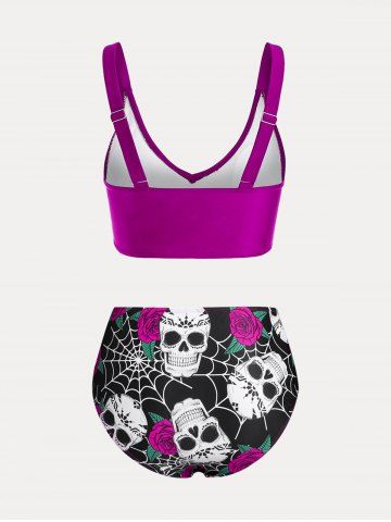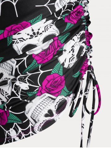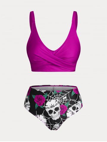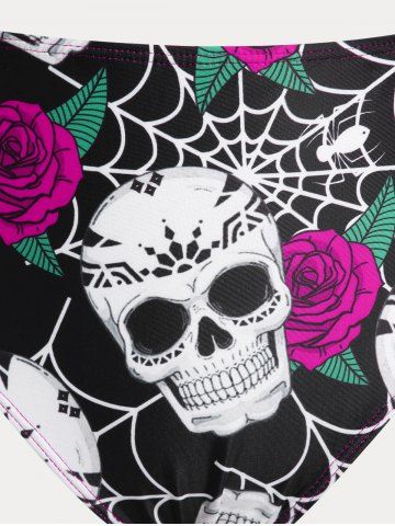 Plus Size Tankinis > Plus Size & Curve Skull Rose Print Crossover Three Piece Bikini Swimsuit