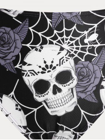 Plus Size Tankinis > Plus Size & Curve Skull Rose Print Crossover Three Piece Bikini Swimsuit