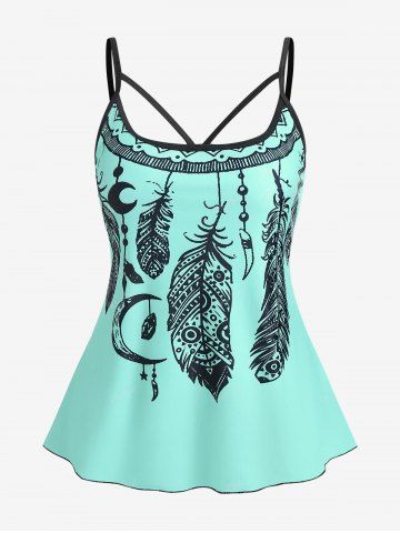 L*****e5Plus Size Dreamcatcher Print Modest Tankini SwimsuitColor: LIGHT GREEN Size: 1XAbsolutely love the way this looks on me I don't normally like my swimsuits but I love this one It stays down doesn't float up to your boobs I've worn it in the ocean and a pool