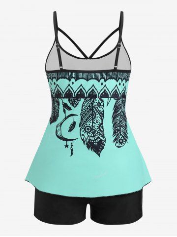L*****e5Plus Size Dreamcatcher Print Modest Tankini SwimsuitColor: LIGHT GREEN Size: 1XAbsolutely love the way this looks on me I don't normally like my swimsuits but I love this one It stays down doesn't float up to your boobs I've worn it in the ocean and a pool