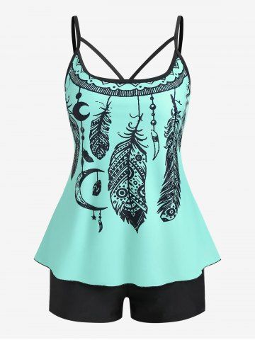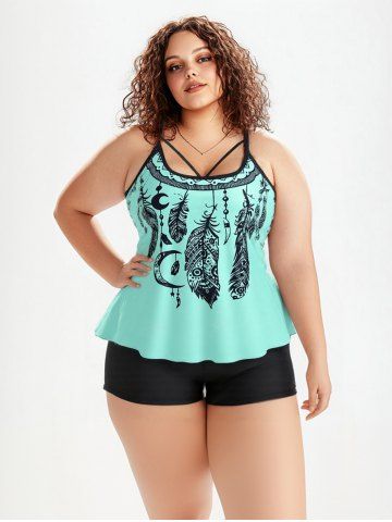 L*****e5Plus Size Dreamcatcher Print Modest Tankini SwimsuitColor: LIGHT GREEN Size: 1XAbsolutely love the way this looks on me I don't normally like my swimsuits but I love this one It stays down doesn't float up to your boobs I've worn it in the ocean and a pool