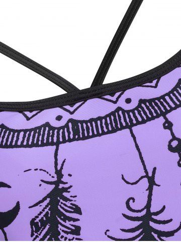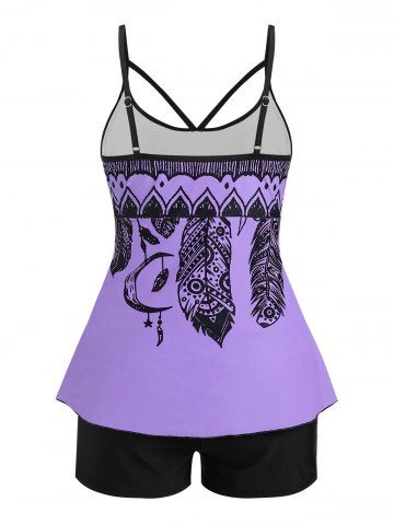 Plus Size Dreamcatcher Print Modest Tankini Swimsuit - Purple - L