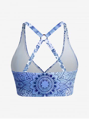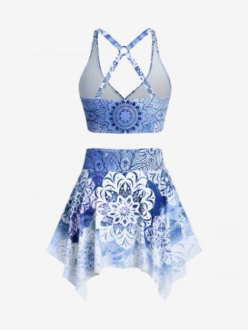 Plus Size Ethnic Printed Ombre O-ring Padded Three Piece Skirt Tankini Swimsuit - Blue - 3x | Us 22-24