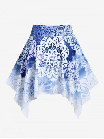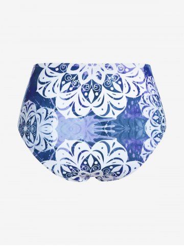 Plus Size Ethnic Printed Ombre O-ring Padded Three Piece Skirt Tankini Swimsuit - Blue - 4x | Us 26-28