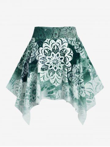 Plus Size Ethnic Printed Ombre O-ring Padded Three Piece Skirt Tankini Swimsuit - Deep Green - 1x | Us 14-16