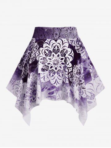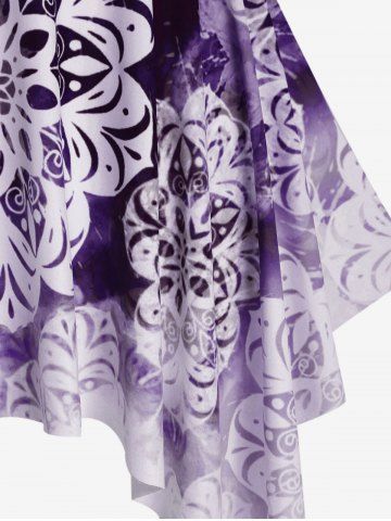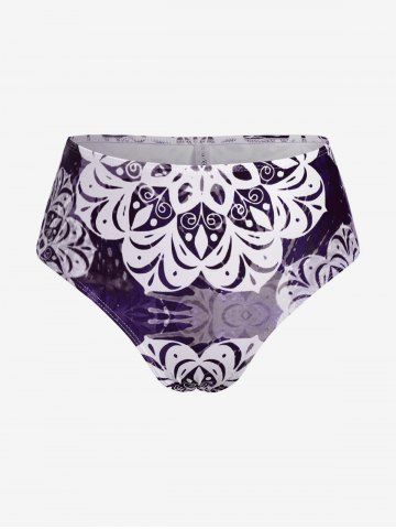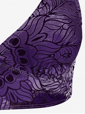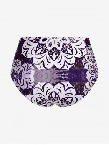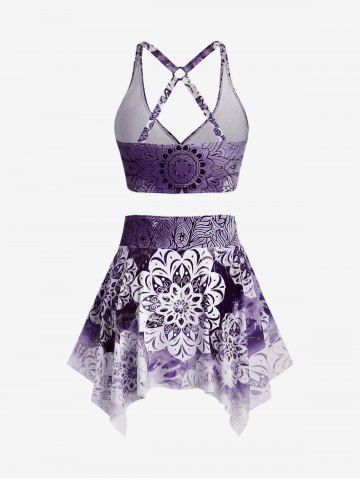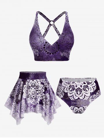 Plus Size Ethnic Printed Ombre O-ring Padded Three Piece Skirt Tankini Swimsuit - Concord - M | Us 10