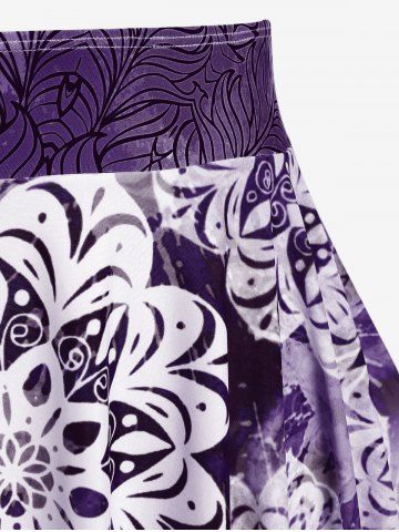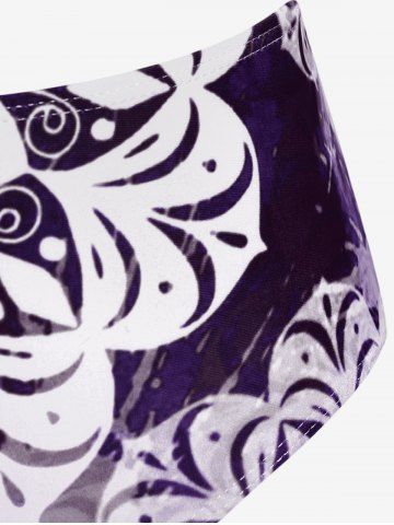 Plus Size Tankinis > Plus Size Ethnic Printed Ombre O-ring Padded Three Piece Skirt Tankini Swimsuit