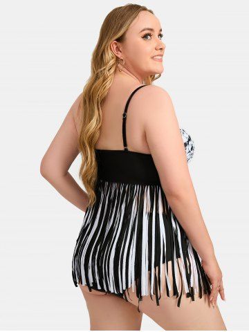 Plus Size Faces Print Tassel Tankini Swimsuit - Black - 1x | Us 14-16