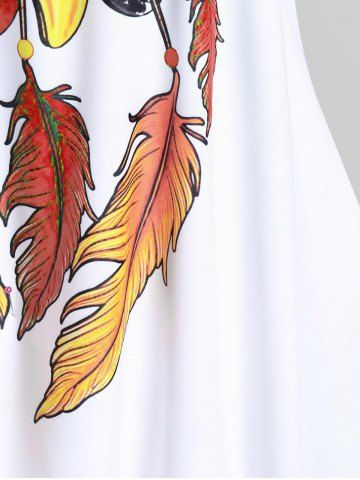 Plus Size Tankinis > Plus Size Feather Print Crisscross Strappy Back Rings Boyshorts Tankini Swimsuit
