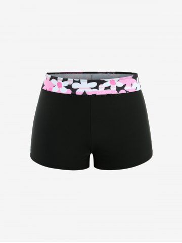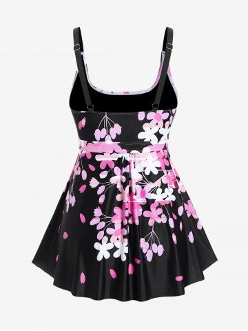 Plus Size Flower Petal Print Boyleg Tankini Swimsuit (Adjustable Shoulder Strap) - Black - 3x | Us 22-24