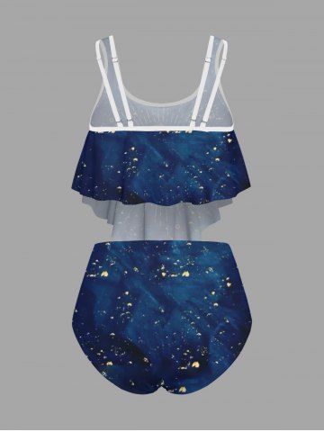 Plus Size Galaxy Moon Star Print Ruched Hawaii Tankini Swimsuit - Deep Blue - Xs