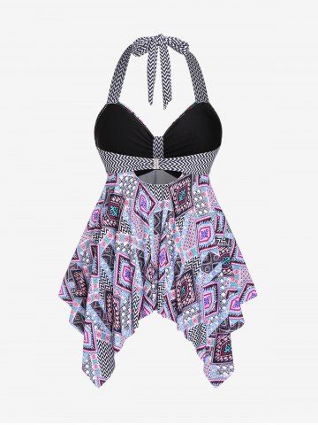 Plus Size Tankinis > Plus Size Geo Bowknot Cutout Halter Backless Handkerchief Tankini Swimsuit