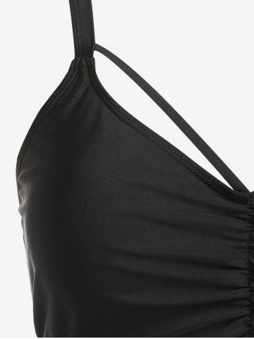 Plus Size Gothic Rose Skulls Printed Ruched Padded Tankini Set Swimsuit - Black - 4x | Us 26-28