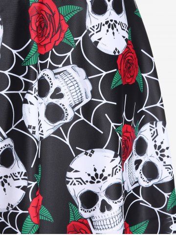 Plus Size Tankinis > Plus Size Gothic Rose Skulls Printed Ruched Padded Tankini Set Swimsuit