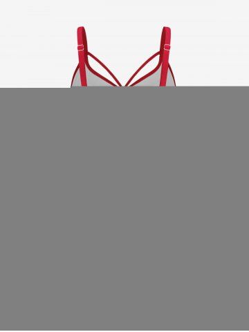 Plus Size Gothic Rose Skulls Printed Ruched Padded Tankini Set Swimsuit - Red - 3x | Us 22-24