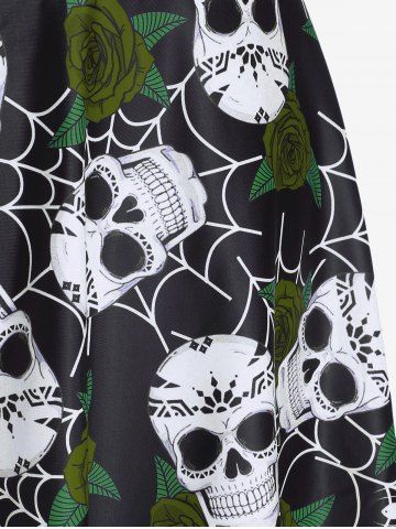Plus Size Tankinis > Plus Size Gothic Rose Skulls Printed Ruched Padded Tankini Set Swimsuit