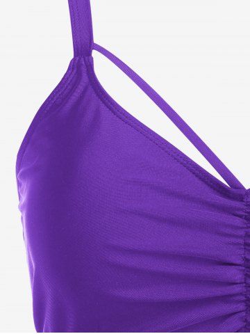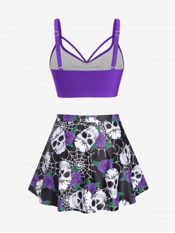 Plus Size Gothic Rose Skulls Printed Ruched Padded Tankini Set Swimsuit - Purple - 4x | Us 26-28