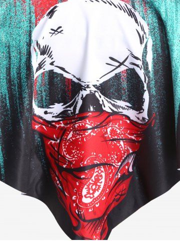 Plus Size Tankinis > Plus Size Gothic Skull Checkerboard Strappy Cinched Ruched Overlay Tankini Swimsuit