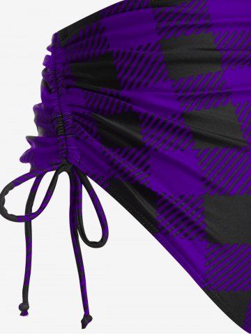 Plus Size Gothic Skull Checkerboard Strappy Cinched Ruched Overlay Tankini Swimsuit - Concord - 3x