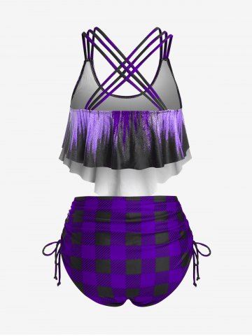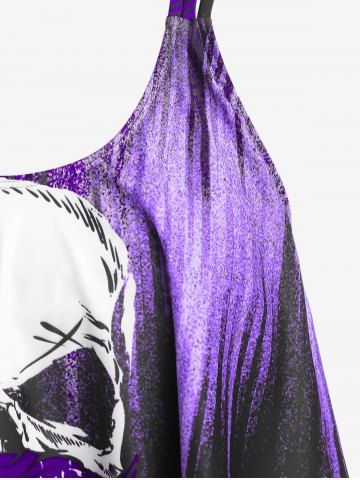 Plus Size Gothic Skull Checkerboard Strappy Cinched Ruched Overlay Tankini Swimsuit - Concord - 5x