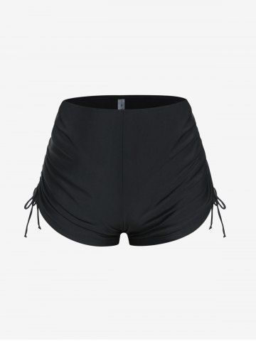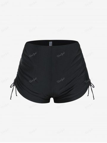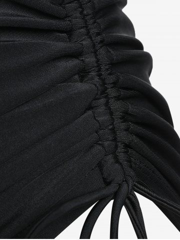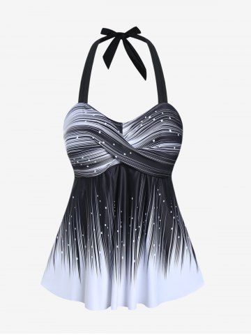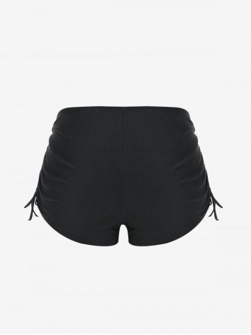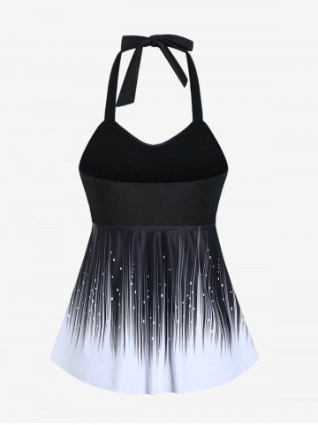 Plus Size Halter Backless Empire Waist Modest Boyshorts Tankini Swimsuit - Black - L
