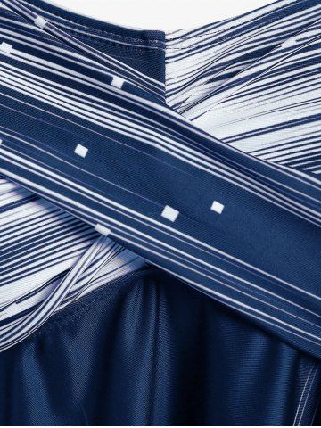 Plus Size Halter Backless Empire Waist Modest Boyshorts Tankini Swimsuit - Deep Blue - 2x