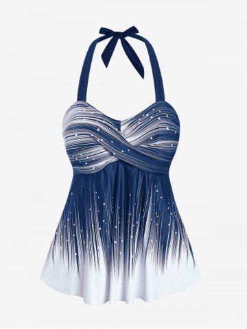 Plus Size Halter Backless Empire Waist Modest Boyshorts Tankini Swimsuit - Deep Blue - 3x