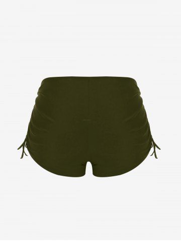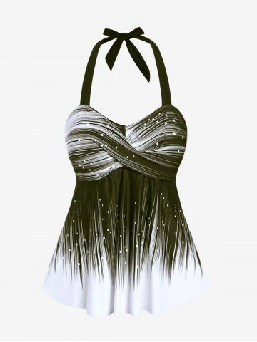 Plus Size Halter Backless Empire Waist Modest Boyshorts Tankini Swimsuit - Deep Green - 3x
