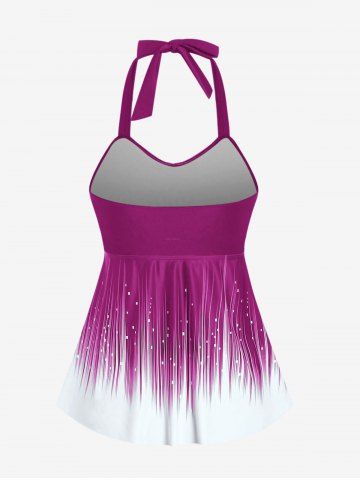 Plus Size Halter Backless Empire Waist Modest Boyshorts Tankini Swimsuit