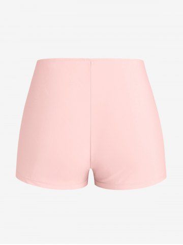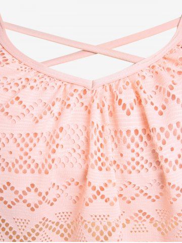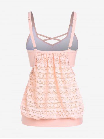 Plus Size Lace Panel Boyleg Double Up Blouson Tankini Swimsuit - Light Pink - L | Us 12