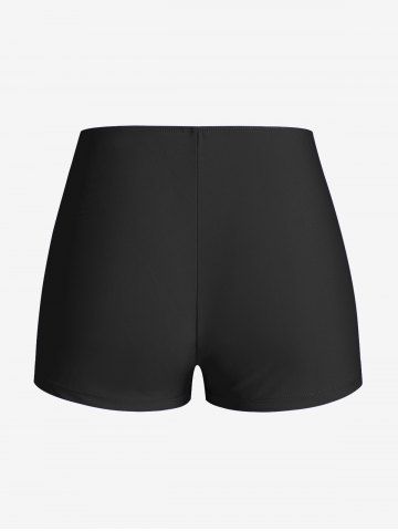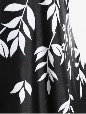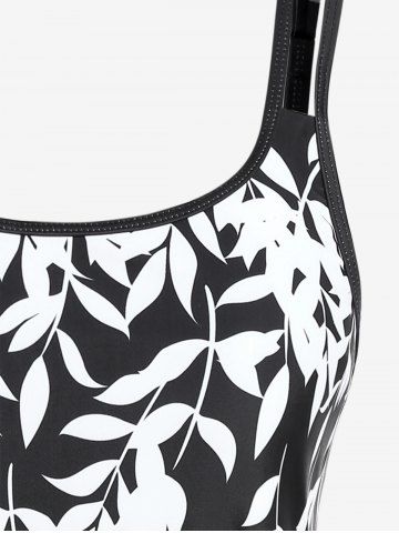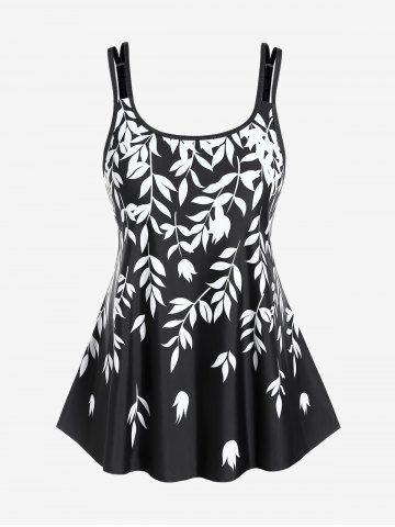 Plus Size Leaf Print Modest Boyshorts Tankini Swimsuit - Black - 1x | Us 14-16