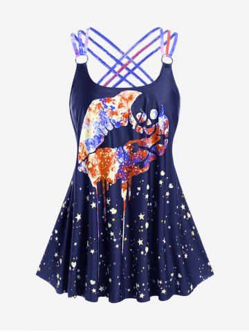 Plus Size Lip Printed Padded Boyleg Strappy Tankini Swimsuit - Blue - 3x | Us 22-24