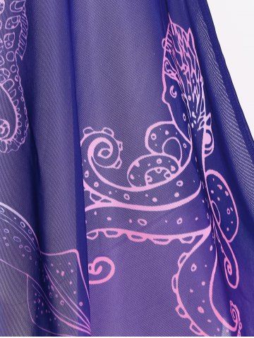 Plus Size Tankinis > Plus Size Mesh Panel Marine Life Printed Padded Halter Tankini Swimsuit