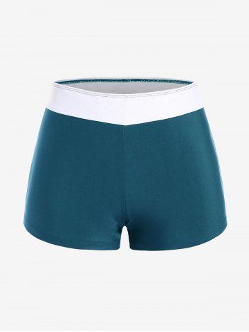 Plus Size Modest Skull Rose Print Rings Crisscross Boyshorts Tankini Swimsuit - Deep Green - 2x | Us 18-20