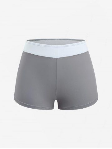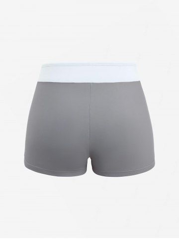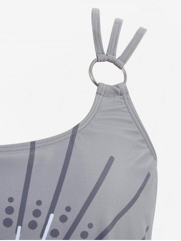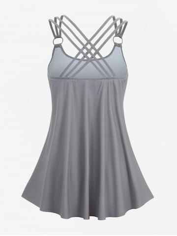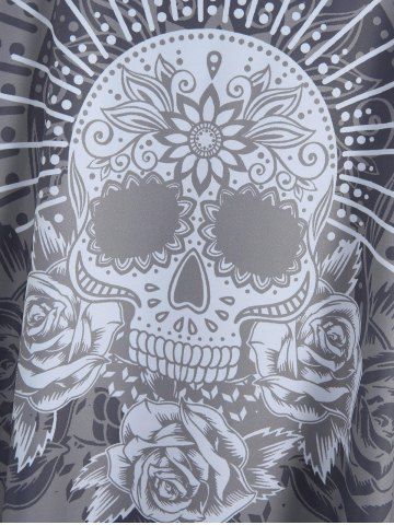 Plus Size Modest Skull Rose Print Rings Crisscross Boyshorts Tankini Swimsuit - Gray - 4x | Us 26-28