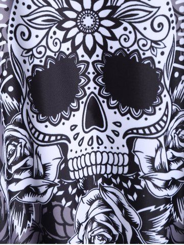 Plus Size & Curve Gothic Skull Print Ruffled Overlay Tankini Swimwear