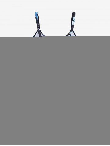 Plus Size Ombre Flower Leaf Print Keyhole Boyleg Tankini Swimsuit - Black - M | Us 10