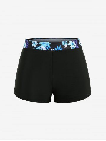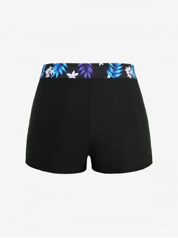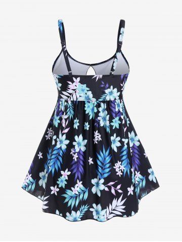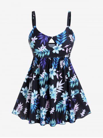 Plus Size Ombre Flower Leaf Print Keyhole Boyleg Tankini Swimsuit - Black - L | Us 12