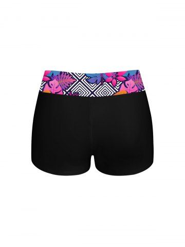 Plus Size Tankinis > Hawaii Plus Size Ombre Leaf Geometric Plaid Print Boyleg Tankini Swimsuit (Adjustable Shoulder Strap)