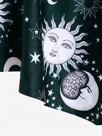 Plus Size Padded Sun Moon Galaxy Printed Stripes Overlay Tankini Swimsuit - Deep Green - 1x