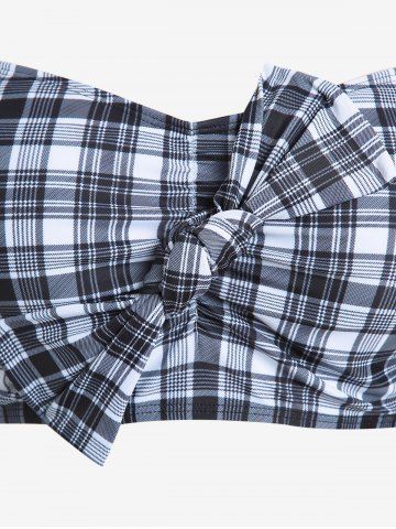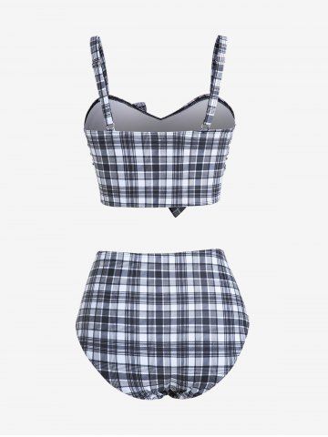 Plus Size Plaid Cinched Bowknot Padded Longline Bikini Three Piece Swimsuit - Black - 1x | Us 14-16