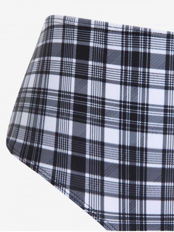 Plus Size Plaid Cinched Bowknot Padded Longline Bikini Three Piece Swimsuit - Black - 3x | Us 22-24