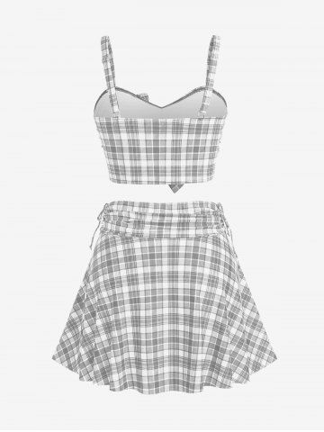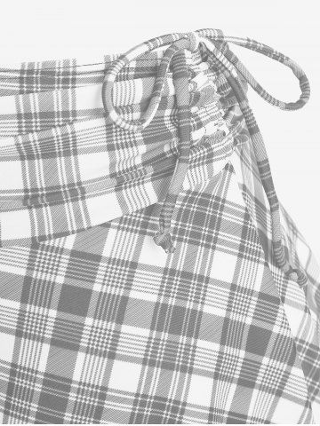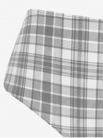 Plus Size Plaid Cinched Bowknot Padded Longline Bikini Three Piece Swimsuit - Gray - 2x | Us 18-20