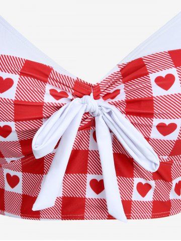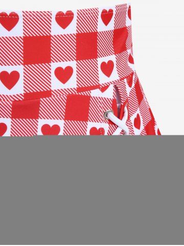 Plus Size Plaid Heart Print Halter Bowknot Lace Up Skirted Tankini Swimsuit - Red - L | Us 12