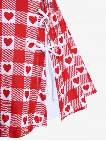 Plus Size Plaid Heart Print Halter Bowknot Lace Up Skirted Tankini Swimsuit - Red - 4x | Us 26-28